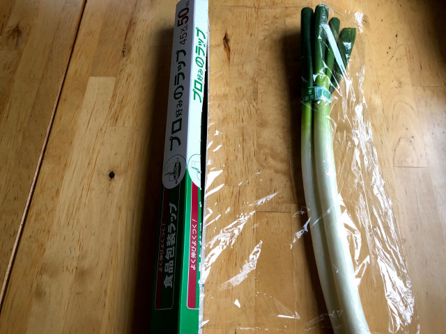 試しに45センチのラップで長ネギを包んでみたところ、ぴったり収まりました。大物野菜をラップで包みたい時に最適ですよ。