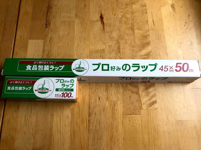 1:業務スーパー プロ好みのラップ 15センチ×100メートル 205円(税込)、45センチ×50メートル 271円(税込)