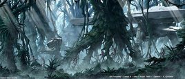 今回披露されたのは未だ謎多き「GODZILLA」の世界観を描いたコンセプトアート。独特な生態系を感じさせる森の中を、巨大なロボット兵器と共に進軍する人間の姿が描かれています。地球とは思えない広大な世界観にワクワクしてきますね。