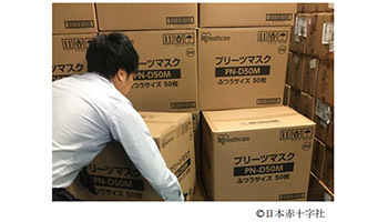 日本赤十字社の高橋孝喜血液事業本部長は、「10万枚ものマスクのご寄贈をたまわり誠にありがとうございます」と感謝したうえで、寄贈されたマスクは血液事業のために有効に活用するとコメント。「献血や血液製剤の製造・供給を担う血液センターにおける安心・安全な環境整備の大きな助けになる」という。