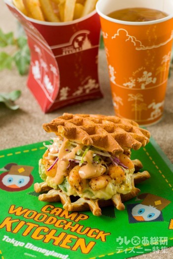 キャンプ・ウッドチャック・キッチン「ワッフルサンド スパイシーシュリンプ&アボカド」 ©Disney