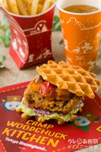 キャンプ・ウッドチャック・キッチン「ワッフルサンド フライドチキン、メイプルソース付き」 ©Disney