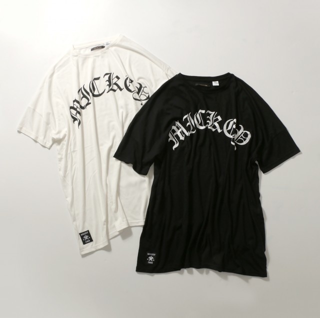 特長:ワンピース丈で身幅もゆったりデザイン。さりげない「MICKEY」の文字がクールな印象。裾タグにも「ミッキー」のプリント!