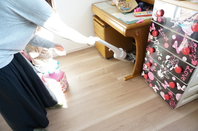 コードレスなので、配線の取り回しを気にしなくても良いのが魅力です。リビングだけでなく、子供部屋の掃除もOK。コンセントに縛られることなく家中を掃除することができます。