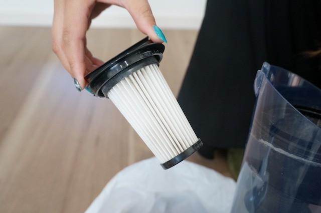 プリーツ状のフィルターに付いた粉塵ゴミを取り除くのはやや大変そう。ただし、よほどの範囲を掃除しなければ毎日掃除せずとも良さそうです。プリーツフィルター、そしてダストカップは水洗いすることができます。