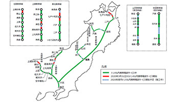 サービスを開始するのは、東北新幹線の七戸十和田駅(手前)~新青森駅(手前)間(トンネル長約32.7km)、上越新幹線の越後湯沢駅~浦佐駅(手前)間と浦佐駅~長岡駅(手前)間(トンネル長約28.8km)、北陸新幹線の飯山駅~上越妙高駅間(トンネル長約22.6km)。3月31日の始発列車からサービスを提供する。