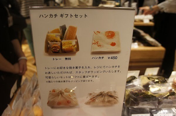 ハンカチギフト☆これありそうでなかった発想。紙のトレーに好きな焼き菓子を入れてハンカチでラッピング。