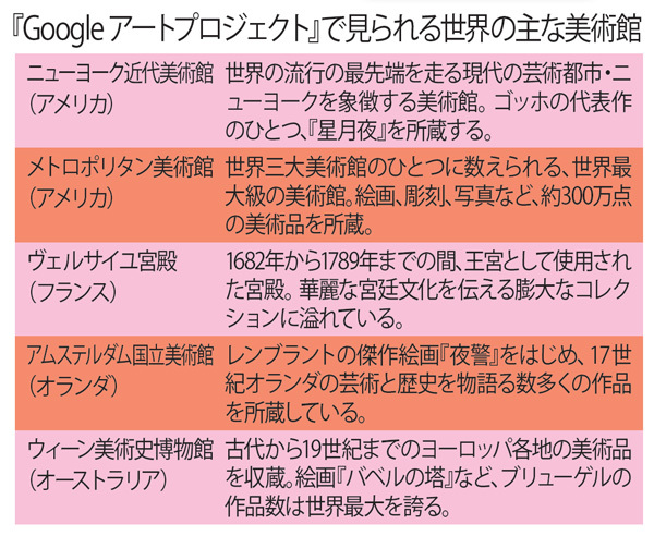 世界中の美術館をネットで見られる『Google アートプロジェクト』が4月より規模を大幅に拡大。