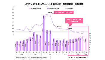 BCNランキングの3月第3週で、2週連続の前年割れになったPC市場