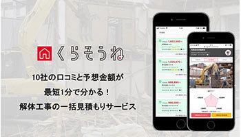 解体工事・外構工事の一括見積もりウェブサービスを運営するクラッソーネは、複数の解体工事会社による見積もり予想金額の算出をAIによって自動化した国内初のサービスとして、解体を希望する施主と工事会社のマッチングサービス「くらそうね」正式版の提供を4月1日に開始する。