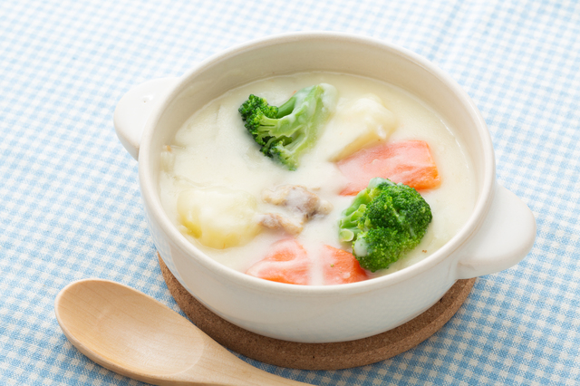 中村「鶏肉や鮭などタンパク質食品と、玉ねぎを炒め、ブロッコリーも加えてスープで煮ます。米粉(片栗粉、小麦粉でも可)を混ぜた牛乳や豆乳を混ぜ、とろみがつくまで煮て塩コショウで味をととのえます。