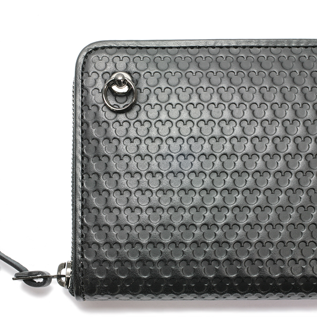 真っ黒で大人の男性のイメージですが、さりげないミッキーの型押しで、普段使いしやすいデザインですね。