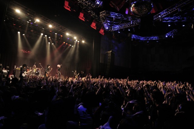 「4番手、アルルカンです。よろしくお願いします」という暁の挨拶から始まったのは『白い鬱』、タイトルに反して漆黒の衣装もあいまって凛とした空気を纏っている。堕門(Dr)のドラムでこの曲を締めくくった後、そこから一転して、「全部やる! 全部よこせ!」と始まった『暁』から『墓穴』、『人形-ヒトガタ-』と立て続けにアッパーなナンバーを披露。