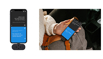 充電やペアリング、ボタン操作なしで利用可能で、東京を含む世界14カ所のサーバーを利用して、高精度の自動翻訳を実現した。また、録音しながら文字起こしができる機能を備えている。