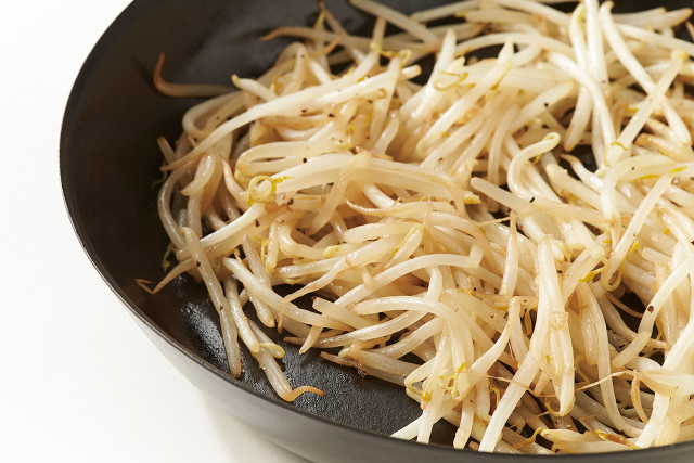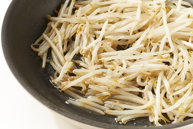 フッ素コートフライパンで炒めたもやしは、余分な水分が蒸発せずに、ベチャつきの原因に。