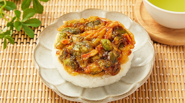 今回リニューアルされ、かき揚が枝豆入りとなった「具のせおにぎり」。