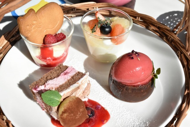 期間限定でお好みのスイーツが4品選べるスペシャルセレクションは、「フルーツとエルダーフラワーのミルクブラマンジェ」や、「ラズベリージェラートのフォンダンショコラ」、「ショコラシューとラズベリーチーズクリームのショートケーキ」、「キャッツ ナップタイム クッキー&アイス」です。