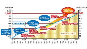 4月6日からは、総合スーパーのアピタとピアゴでもmajicaが利用可能になったことから、会員数が1000万人を突破した。