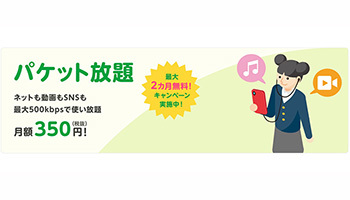 あわせて、mineoではオプションサービス「パケット放題」を最大2カ月間無料にするキャンペーンを、3月3日~5月31日の期間に実施している。キャンペーンでは、「パケット放題」を申し込んだユーザーを対象に月額350円のオプション料金を最大2カ月間無料にする。