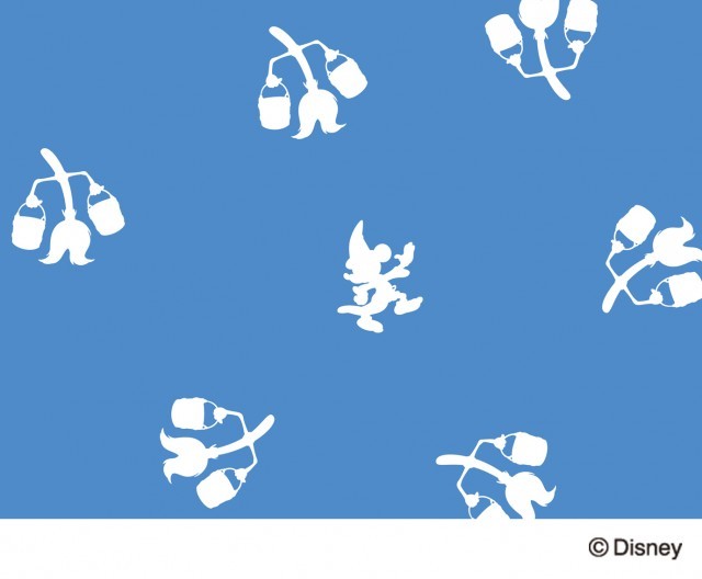 内装生地にはミッキーと水汲みをホウキの姿がシルエットで描かれています。