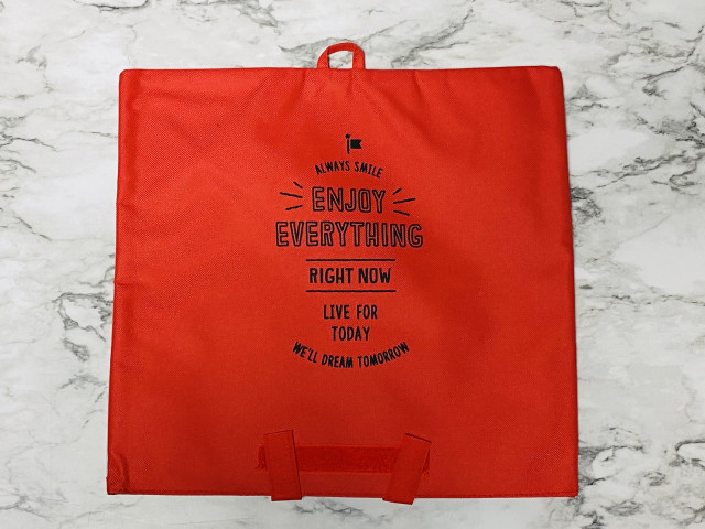 表面はキャンバス生地で、裏側はビニール生地になっていて、透明袋に入ったままのうちわをそのまま収納できるサイズです。
