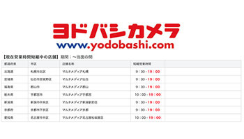 ヨドバシカメラは、4月13日20時にウェブサイト内の「お知らせ」を更新し、「新宿西口本店」をはじめ、首都圏の主要店舗を4月14日から当面の間、一時休業すると発表した。休業中も、「ネットで注文、店舗で受け取り」サービスの受け取りカウンターは営業を継続し、一部店舗で時間外受け取りも可能。一方、「緊急事態宣言」の対象外エリアの店舗は、当面の間、営業時間を夜19時までに短縮しつつ、営業する。