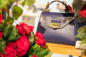濃紺とゴールドの配色が上品なハンドバッグ
