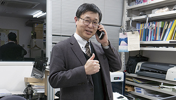 喋らないで“むっ” とした時の顔が怖い人がいる。大杉先生はこのタイプだ。取材の終盤で先生の携帯が鳴った。数歩、窓際に移動して電話応対が始まった。話す立ち姿が絵になっていたので、カメラを向けた。すると、サッと右手が胸まで伸びて「グッジョブ」サインだ。微笑みながらである。どうしたというのだ、このサービス精神は…。この直後から私のインタビューは打ち解けたものになった。「歌って踊れることが、教師の絶対必要条件です」と真顔でおっしゃる。今もって私はこのことに半信半疑だが、確かに垣根がなくなった。怖い風貌の方はぜひ、歌って踊る術を身につけてください。人間関係に得をしそうです。