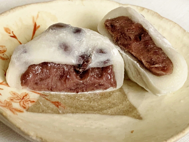 優しい味わいの大福生地に、北海道産小豆を使用した柔らかい粒餡がつつまれています。