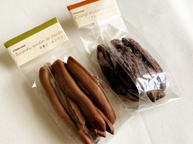 「甘夏ピールチョコレート」は、熊本産の肉厚でジューシーな甘夏ピールに、ミルクチョコレートをコーティング。