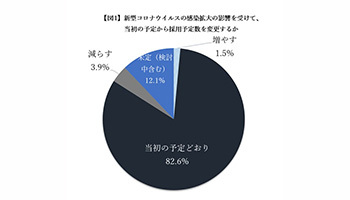 調査対象の企業に、新型コロナウイルス感染症の感染拡大によって、採用数を変更するかを尋ねたところ、82.6%の企業が「当初の予定どおり」と回答した。