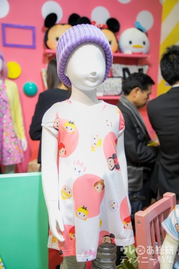 ピンクのTシャツワンピースは、ガールズキャラクターのツムがちりばめられたポップなデザインです。