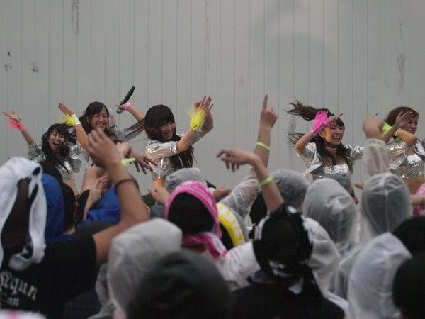 Super Live二日目の後には、深夜のクラブイベントに出演、さらに翌日には、お台場MEGA WEBでリリースイベントを開催したLinQ Lady、ものすごいタイトスケジュール。さらには7月1日に開催されたアイドルフェス「アイドル横丁夏祭り」にも出演!こちらのイベントで、今回の東京4Daysは打ち止めとなります。もちろん、この「アイドル横丁夏祭り」、取材に行ってまいりました!まずは、LinQ Ladyのパートを先行レポートさせていただきます!LinQ Ladyが最初に登場したのは野外ステージ。そして、折りしも天候は大雨…そう、絶好の野外フェス日和!こんな雨の中でのライブこそが、フェスの楽しみじゃないですか!セクセイなずぶ濡Ladyたちが見れるのは夏祭りならではっ!!メンバーもお客さんもヒートアップしまくって、ものすごいアツイステージになりました。先日の緊張が嘘のように、悪天候の中で気合十分、笑顔満面であります!雨の中でずぶ濡れになりながら見ていた鈴木も、体は冷えているのに胸がググッと熱くなりました…。