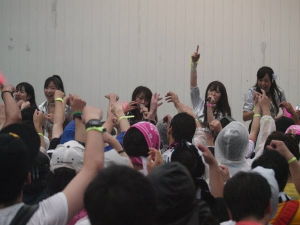 今回の上京は4日間、そのうちの二日がいつもと違うスタイルのワンマンライブということで、かなり緊張しまくっていたんだと思います。特に、Super Liveの一日目とかはみんな緊張しているのが丸わかりだったんですね。でも、この日は重圧が抜けて、清清々しくも凛々しい顔で歌い踊ってくれました。このひたむきさっていうか、嘘のなさが、LinQ全体の良さだと思っているんです。LinQって、いわゆるアイドルアイドルした子だけが選ばれてるじゃなくて、イイ意味で普通の、でも個性をしっかり持った女の子が、全力でぶつかっていくところがアツイと思うんですよ。特にLadyはお姉さんメンバーがメインだったりして、ティーン全盛のグループとは趣が異なります。でも、そんな彼女達の、素材の味をそのまま楽しめるLinQは、こんな舞台でこそさらに輝くのかも…。そうそう、こんなLinQが見たかったんだよ!ううん水も滴るイイLady!と思わず唸ってしまいます!そして、見ているお客さんもめっちゃ熱かった!ホントにLadyのことが好きなんだろうなーって思いました。で、雨の中でずっと盛り上がっているお客さんはもちろん、短いステージでも終盤になると足を止める人が増えているんですよね。いいパフォーマンスは、絶対人に届くんですよ!