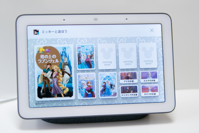 スマートスピーカーでも楽しめますが、スマホアプリやGoogleのスマートディスプレイ(画面付きスマートスピーカー)Google Nest Hubでは、ミッキーが声だけでなく画面に登場してくれます。