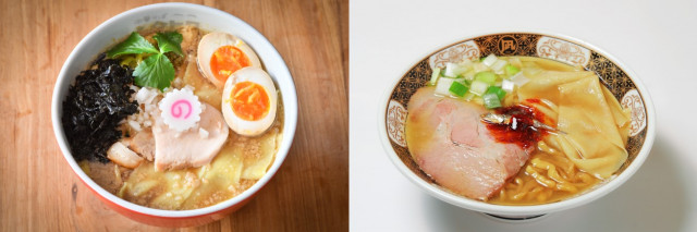 ムタヒログループの主力メニュー「中華そばムタヒロ」と、超濃厚の煮干スープが効いた「すごい!煮干ラーメン」のコラボセット。