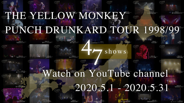 結成30周年を迎えているTHE YELLOW MONKEYが、全国113公演に及んだ1998〜99年開催のロングツアー『PUNCH DRUNKARD TOUR 1998/99』より、全47都道府県のライブ映像合計47本を期間限定で公開する企画「47 shows of “PUNCH DRUNKARD TOUR 1998/99”」を、5月1日(金)よりオフィシャルYouTubeチャンネルにてスタートさせた。