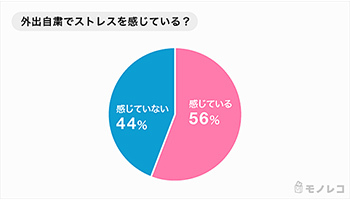 調査対象者に、外出自粛でストレスを感じているかを尋ねたところ、56%が「ストレスを感じている」と回答した。