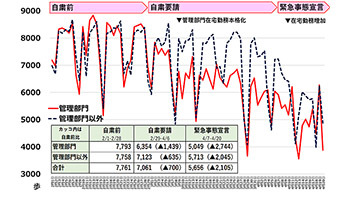 外出自粛要請や在宅勤務の開始にともない、1日の平均歩数が大幅に減少