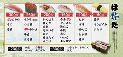 1貫オーダーのお好み握り寿司は1貫50円から。徹底的にリーズナブルな、回転寿司価格です。