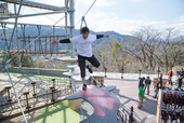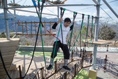 標高370mの崖にせり出す巨大アスレチックは、大人から子供まで本気で楽しめます。