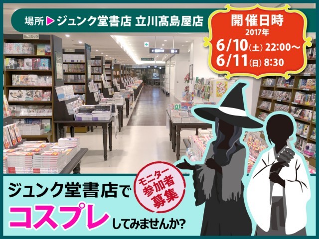 大量の本がずらりと並ぶ書店でコスプレを楽しむ。そんな非日常的な体験ができる企画「ジュンク堂でコスプレしてみる」が、東京・立川市にあるジュンク堂書店 立川高島屋店で開催されます。