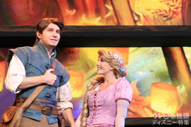 カリフォルニア ディズニーランド・リゾート内で公演されている「ミッキー・アンド・ザ・マジカル・マップ」に登場するラプンツェルとフリン ©︎Disney