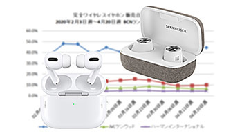 シリーズ別の販売台数シェアランキングでは「AirPods Pro」が前月から6.6ポイント増の27.0%を記録。下位モデルの「AirPods with Charging Case 第2世代」の2倍の売れ行きとなっている。トップテン内で注目したいのは、10位のゼンハイザー「MOMENTUM True Wireless 2」。4月16日に発売したばかりの3万円を超える高級機ながら人気を集めている。(BCN・大蔵 大輔)