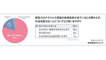 新型コロナウイルスの自覚症状が出ているにも関わらず、外出を控えない人に対して「憤りや怒りを感じる」という意見が80.0%に達した。