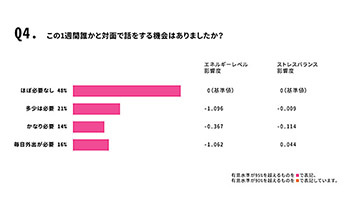 調査では、ストレススキャン内で1943人のユーザーを対象に4月29日~5月6日の期間に行ったアンケート調査の結果と、ストレススキャンによって測定したエネルギーレベル、ストレスバランスとの関係性を分析している。