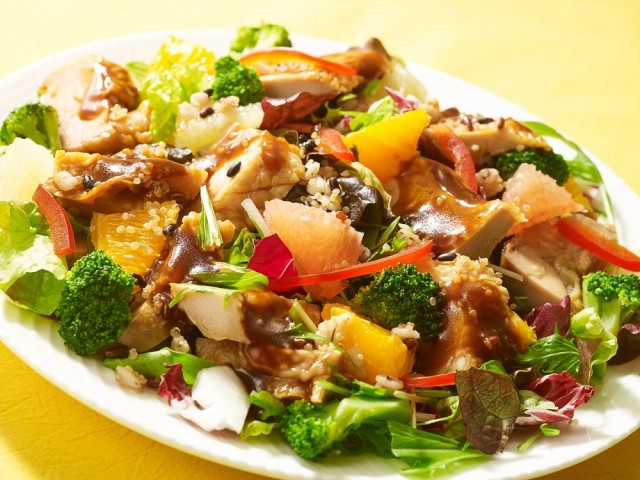 照り焼きチキンとフルーツのパワーサラダ フルーツビネガードレッシング