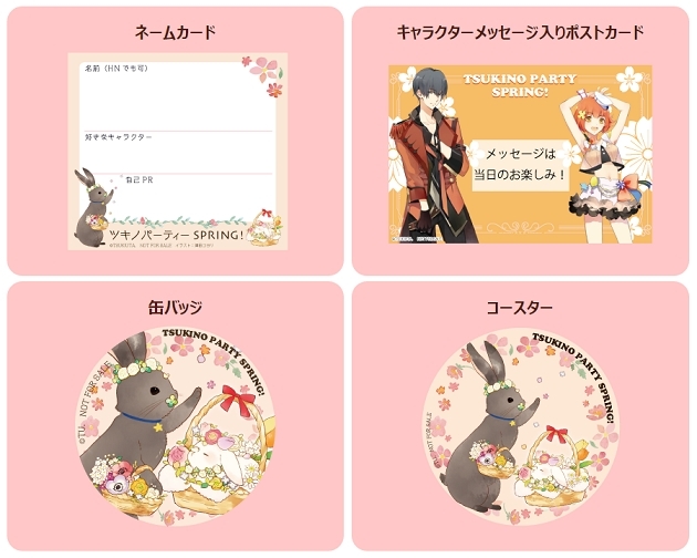 交流会では、作中のアイドルユニットをモチーフとしたコラボフード「Six Gravityのてりやきピザ」「Procellarumのクリームパスタ」や、コラボドリンク「4月をイメージしたドリンク『桜風味のいちごミルク』」「Six Gravityイメージドリンク」などを楽しめるほか、限定オリジナルノベルティのプレゼントも用意されているとのこと。プレゼントは、津田コヨリ描き下ろしによる「ツキウタ。」のうさぎのキャラクター黒田・白田のコースターや、メッセージ入りポストカードなど豪華な内容になっているそうです。