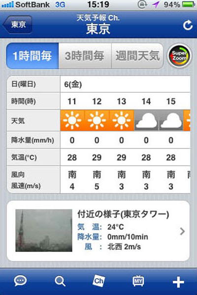 さっきまで照りつけていた太陽が今は雲に隠れちゃった。夜になったら急に寒くなった。なんて、1日野外にいることが多い夏フェスは天気が心配になっちゃいますよね。そこで、このアプリ。県ごとではなくて、もっと細かい地域で見ることができ、さらに、1時間ごとの天気も分かっちゃうんです!! これさえあれば、急に雨に振られてずぶ濡れ….なんて心配もなさそう。