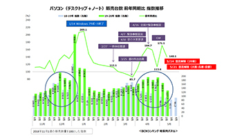 BCN総研の木下智裕部長は、段階的な緊急事態宣言の解除が行われている5月第3週(5月18~24日)を次のように占う。「5月14日に39県で緊急事態宣言が解除されたが、PCや周辺機器の販売はまだ好調で、テレワーク特需が継続しているようにみえる。今週も前年比140%程度になると予想する」。